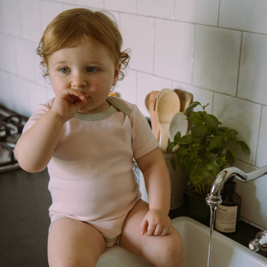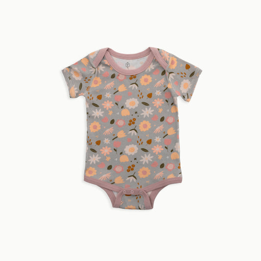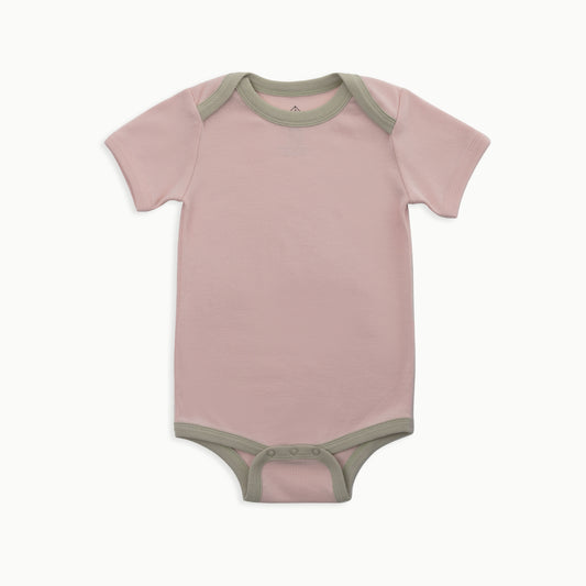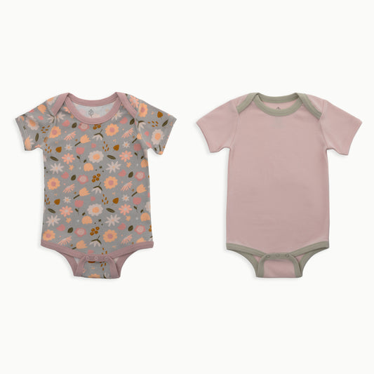 ORGANIC COTTON BABY SHORT SLEEVE BODYSUIT, 2-PACK | FLOWERS + SOLID PINK