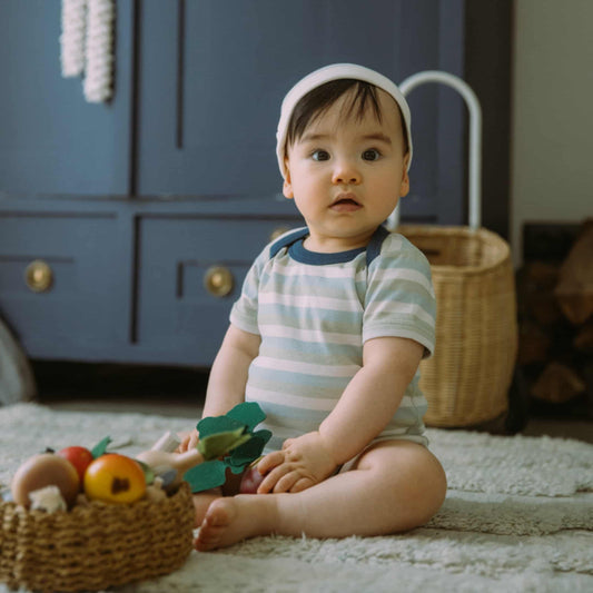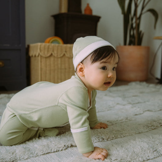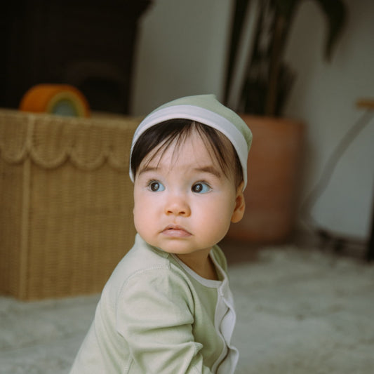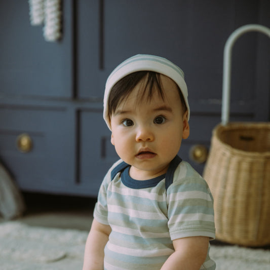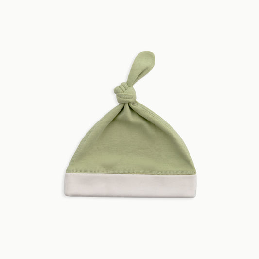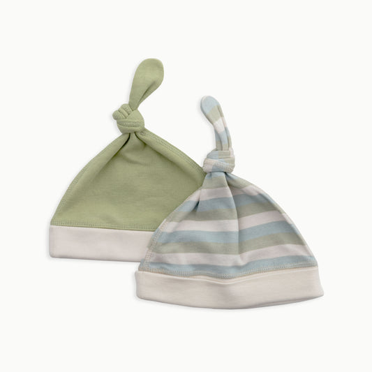 ORGANIC COTTON BABY KNOTTED HAT | STRIPED + SOLID GREEN