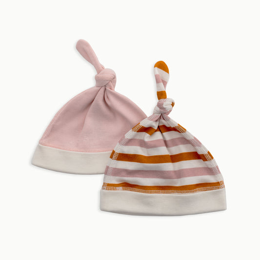 ORGANIC COTTON BABY KNOTTED HAT | STRIPED + SOLID PINK