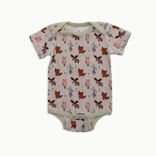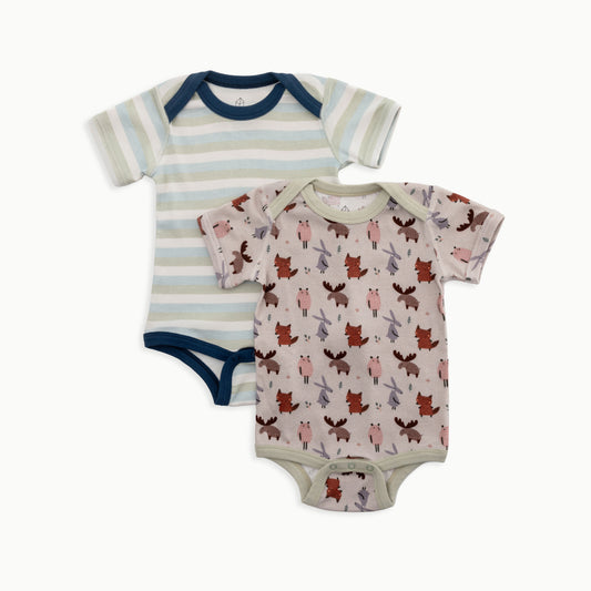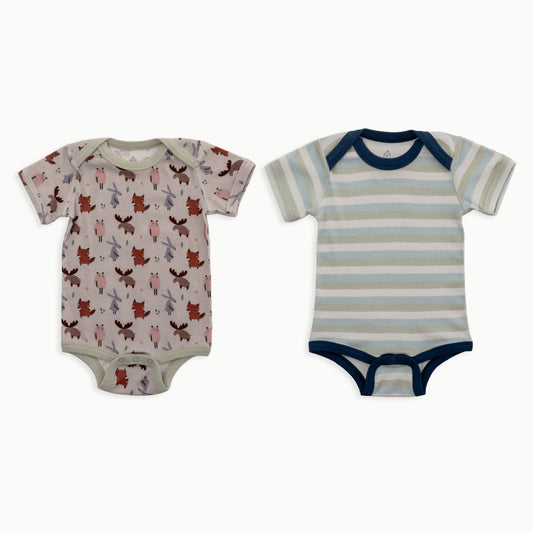ORGANIC COTTON BABY SHORT SLEEVE BODYSUIT, 2-PACK | WOODLAND + STRIPED