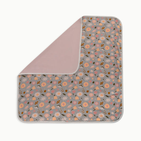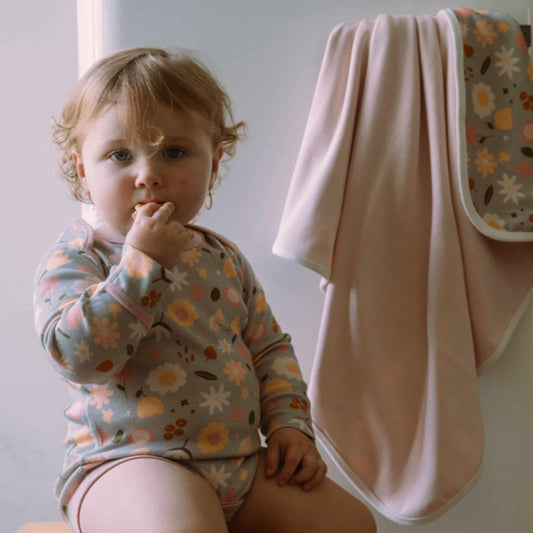 ORGANIC COTTON BABY DOUBLE-SIDED BLANKET | FLOWERS + SOLID PINK