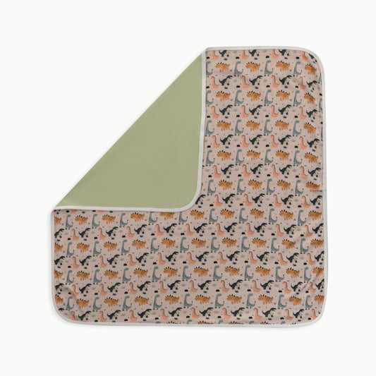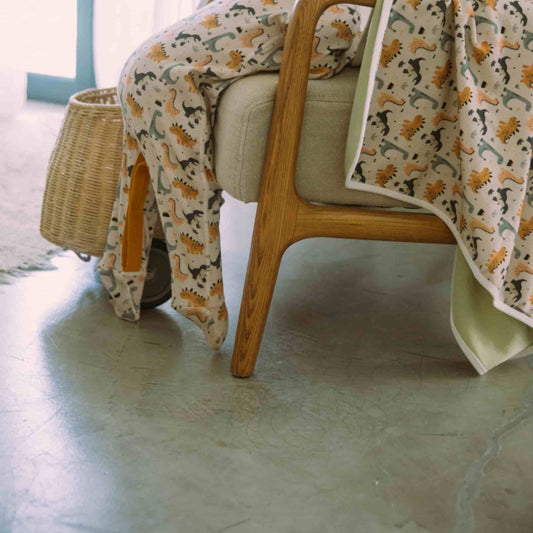 ORGANIC COTTON BABY DOUBLE-SIDED BLANKET | DINOSAUR + SOLID GREEN