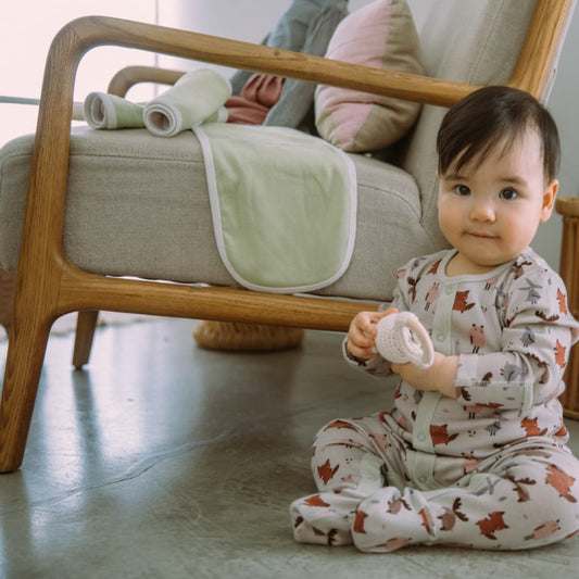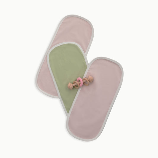 ORGANIC COTTON BABY BURP CLOTHS, 3-PACK | PINK + SOLID GREEN