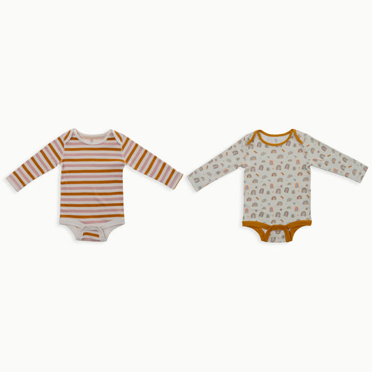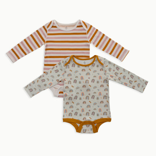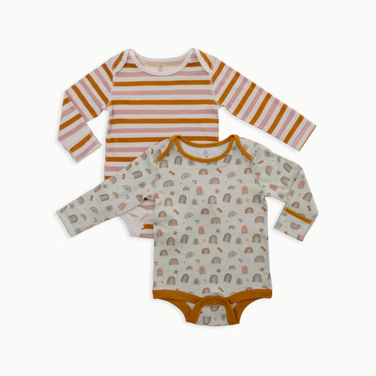 ORGANIC COTTON BABY LONG SLEEVE BODYSUIT, 2-PACK | RAINBOWS + STRIPED