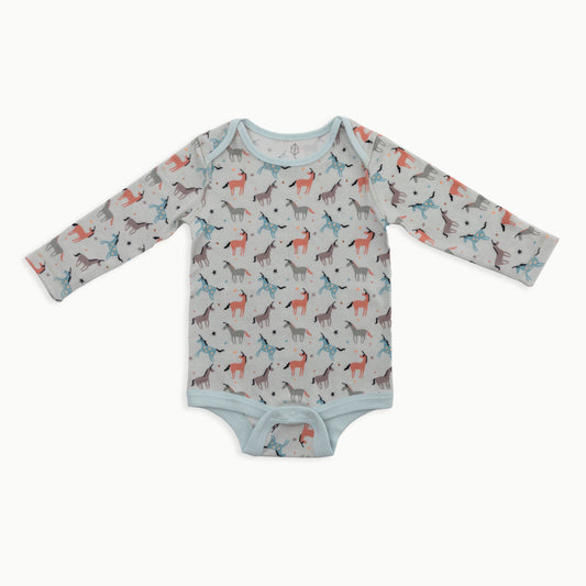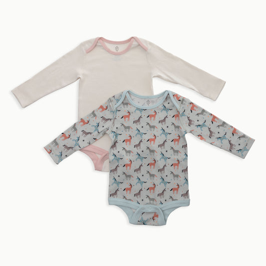 ORGANIC COTTON BABY LONG SLEEVE BODYSUIT, 2-PACK | UNICORNS + SOLID CREAM