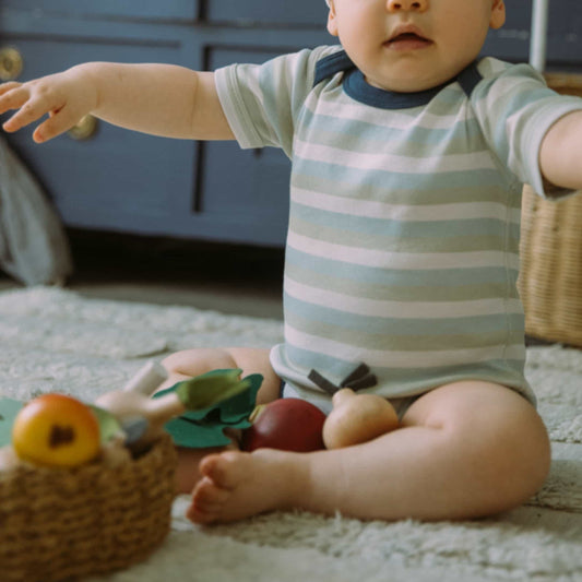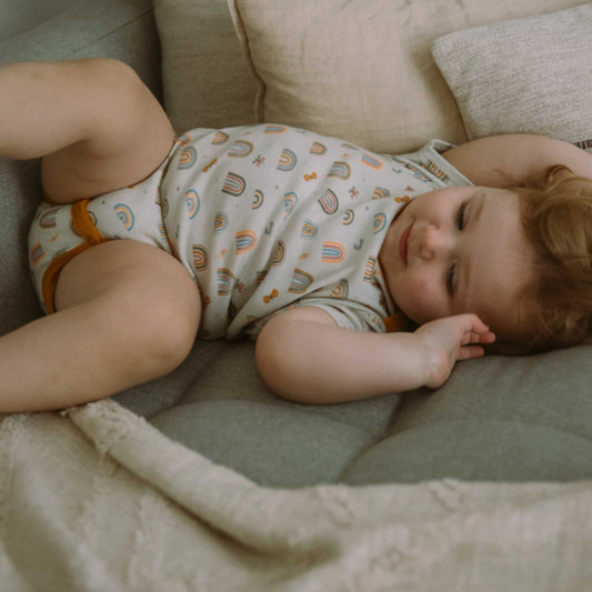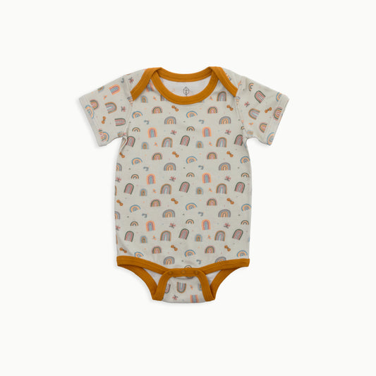 ORGANIC COTTON BABY SHORT SLEEVE BODYSUIT, 2-PACK | RAINBOWS + STRIPED