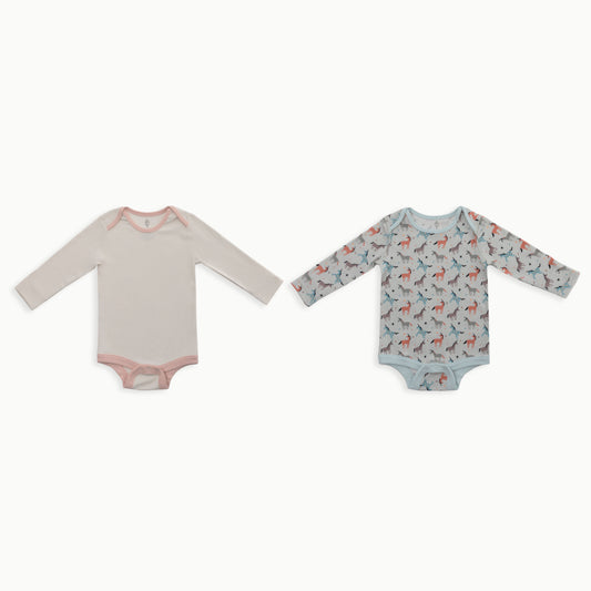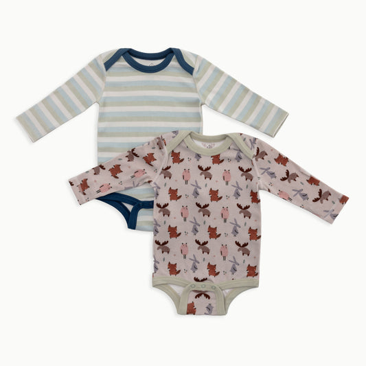 ORGANIC COTTON BABY LONG SLEEVE BODYSUIT, 2-PACK | WOODLAND + STRIPED