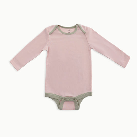 ORGANIC COTTON BABY LONG SLEEVE BODYSUIT, 2-PACK | FLOWERS + SOLID PINK