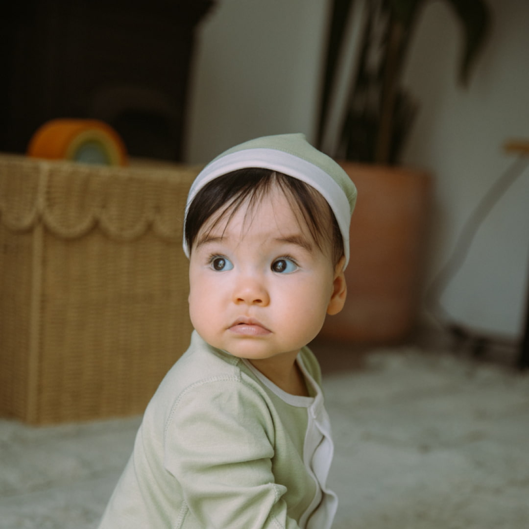 Keep little heads cozy with our GOTS-certified organic cotton knotted hat—soft, breathable, and adjustable for a snug, irritation-free fit that grows with your baby.