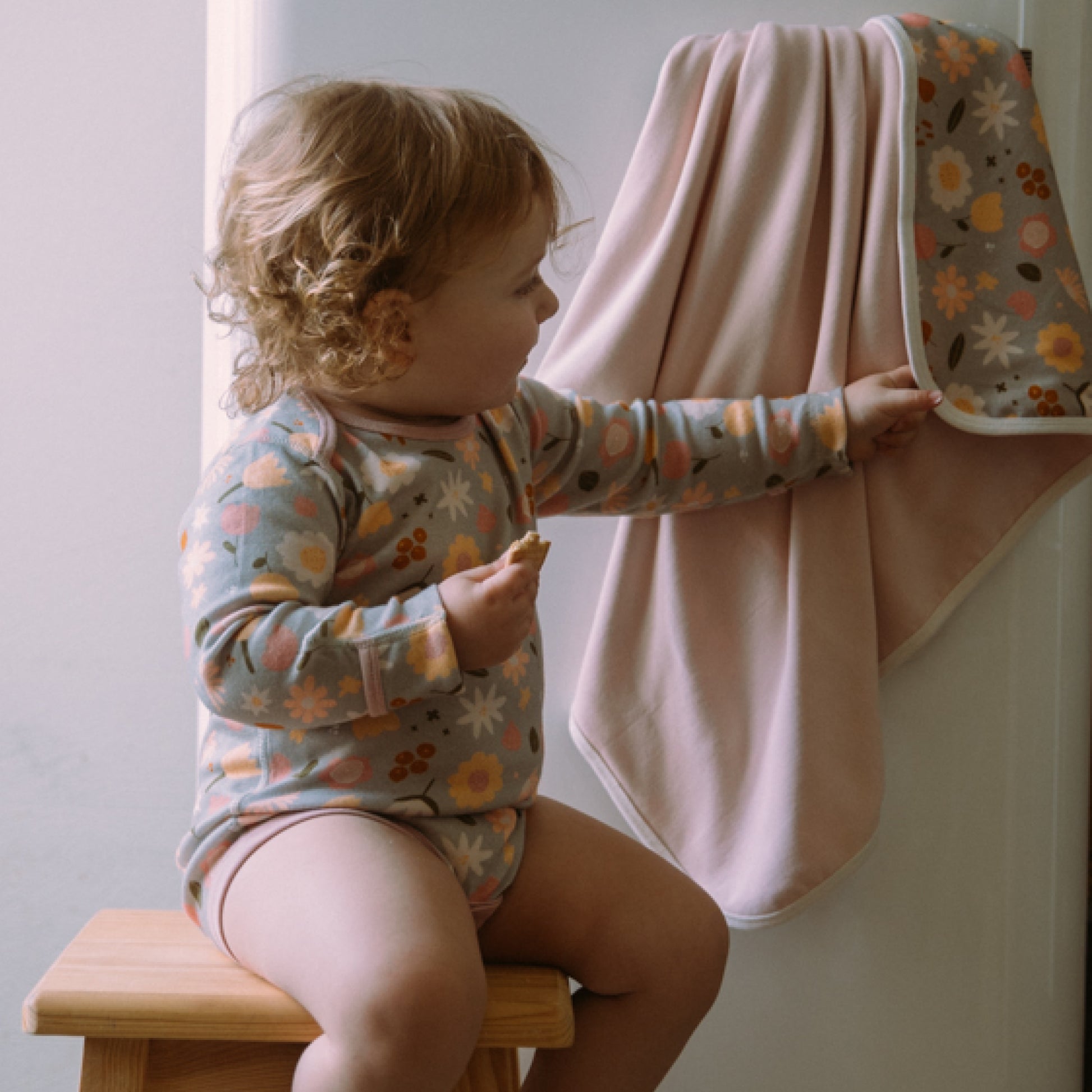 Organic Cotton Baby Double-Sided Blanket | Flowers + Solid Pink