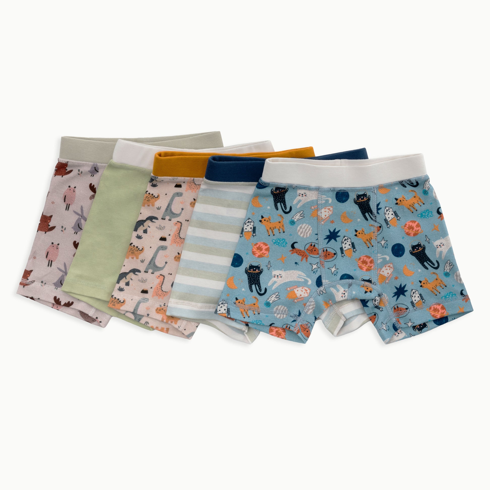 Includes: 5 Organic Cotton Briefs (3 Prints + 1 Solid + 1 Striped).