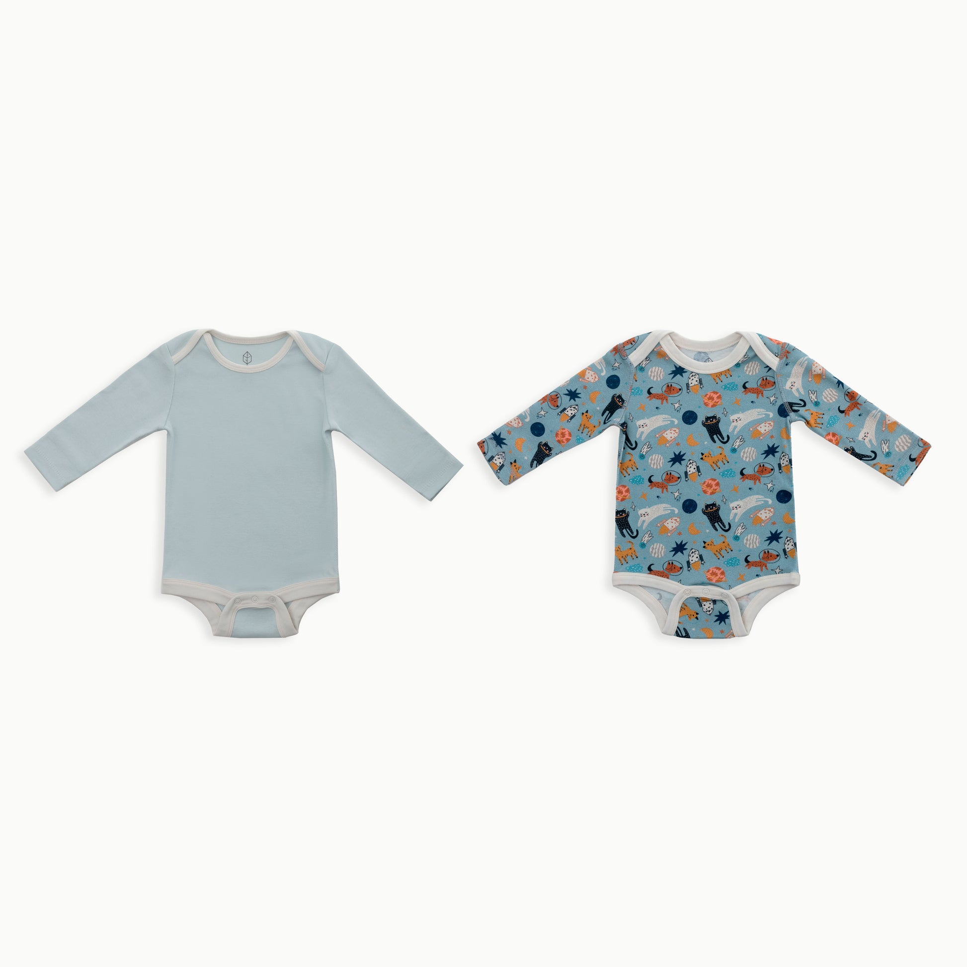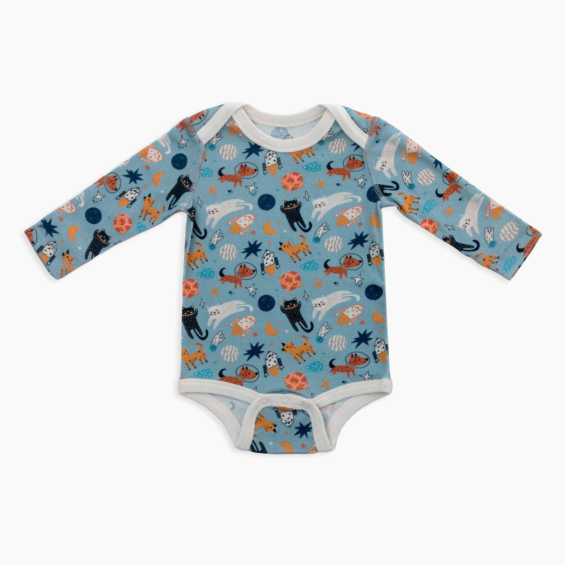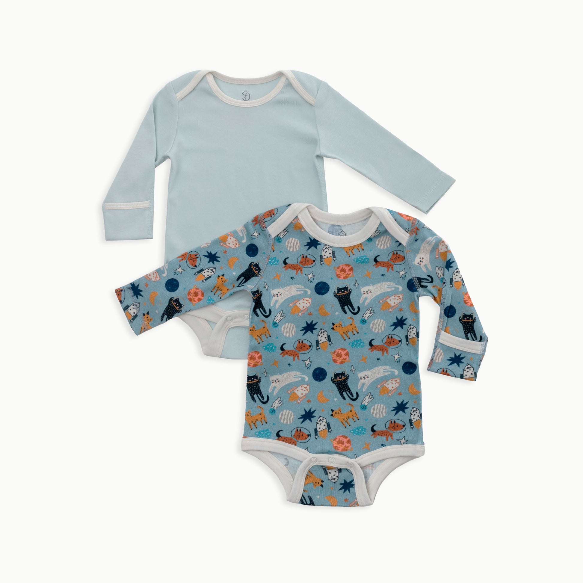 Organic Cotton Baby Long Sleeve Bodysuit, 2-Pack | Space Cats + Solid Blue