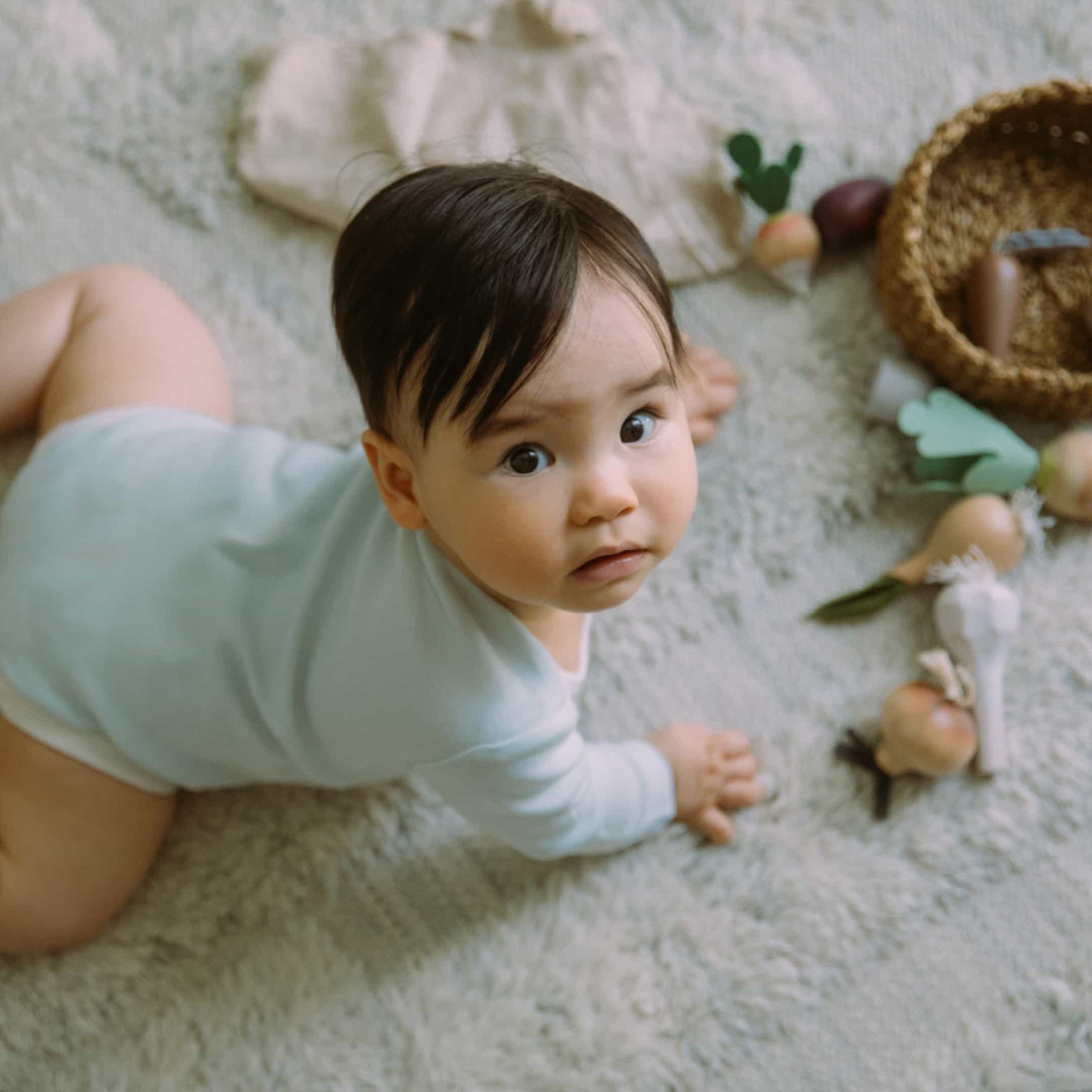 Soft, breathable, and gentle on sensitive skin — our long sleeve bodysuits are made from 100% organic cotton with flat seams, fold-over mittens in sizes 9-12 months and under, a lap-neck design, and color-coded snaps for easy dressing and diaper changes.