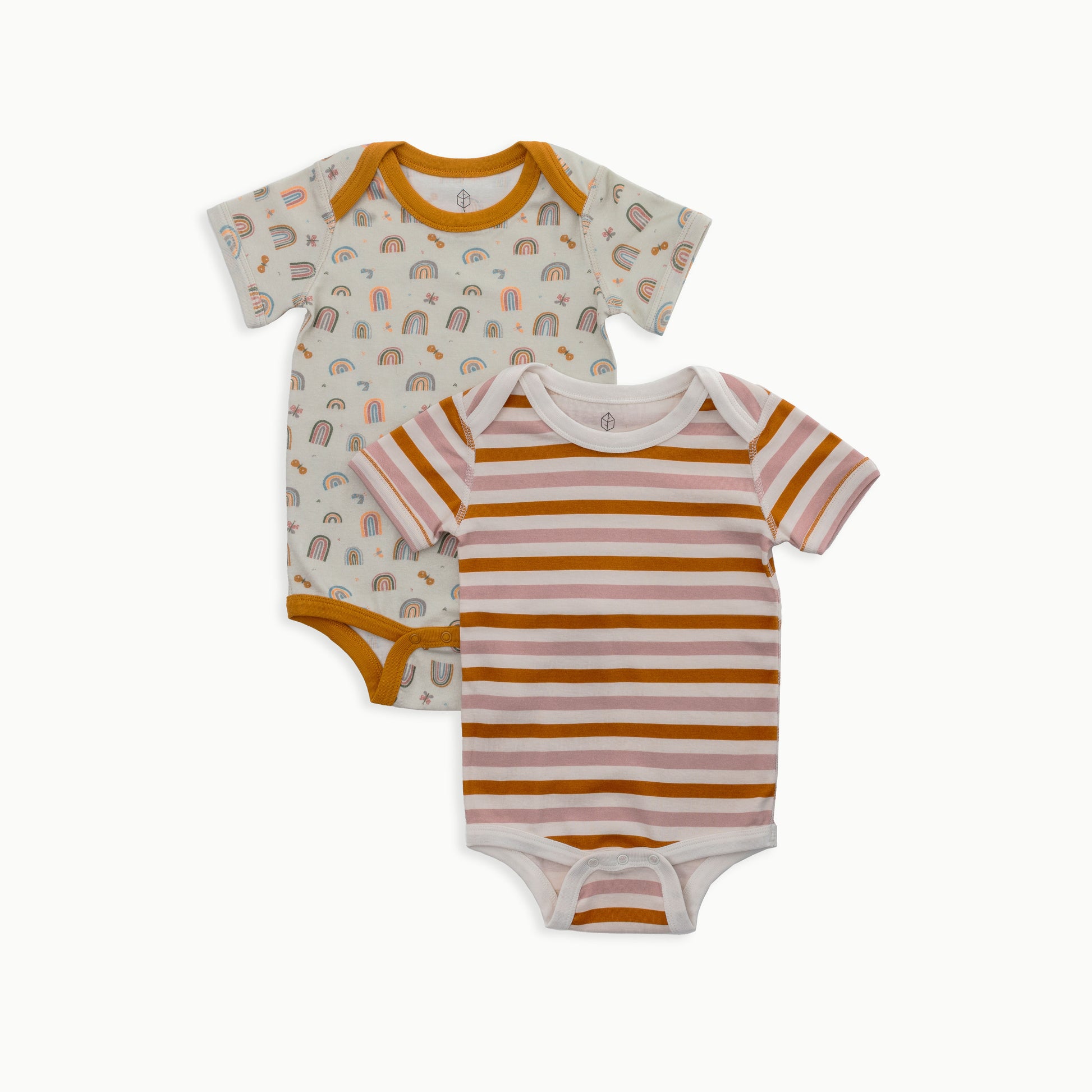 Organic Cotton Baby Short Sleeve Bodysuit, 2-Pack | Rainbows + Striped